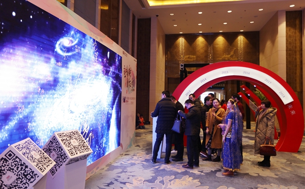 图2:入场、电子签到、拍照,大家在入场互动区留下新年最靓丽的身影